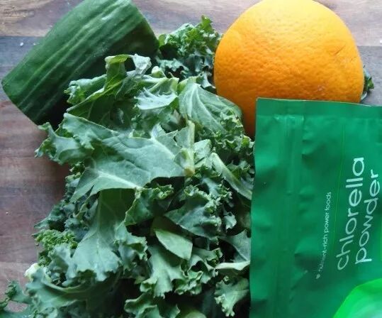 Tips: 小球藻可以換成螺旋藻,橘子,黃瓜、羽衣甘藍等也可以換成犁、芒果等自己喜歡的水果或蔬菜。